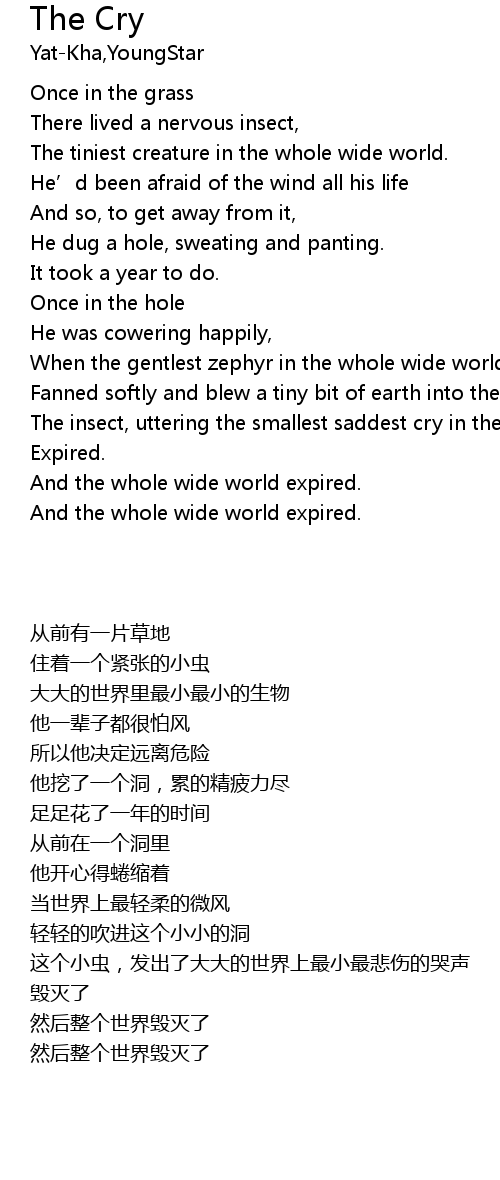 | [02:37.00] | 这个小虫,发出了大大的世界上最小最悲伤的哭声 |