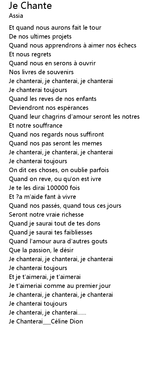 | [03:45.0] | Je Chanterai___Ce line Dion |