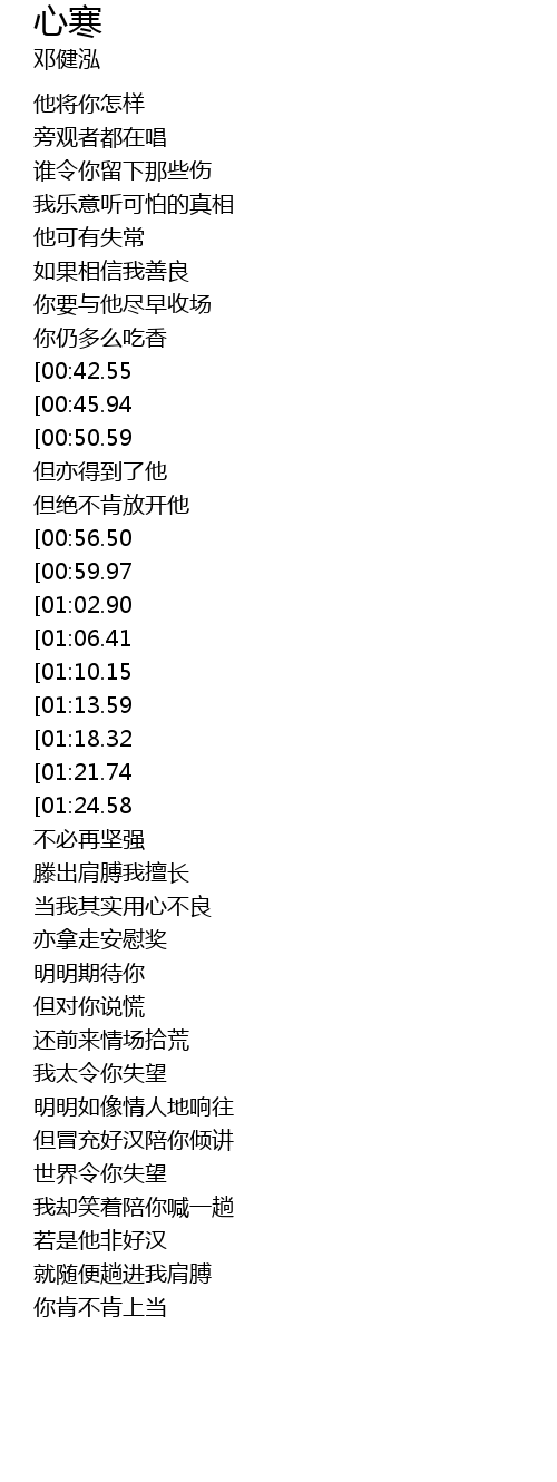 | [02:10.70][00:59.97] | 我却令我心寒 |