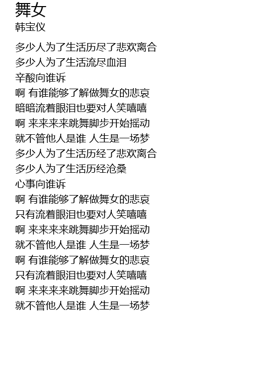 | 歌曲 | 舞女 |