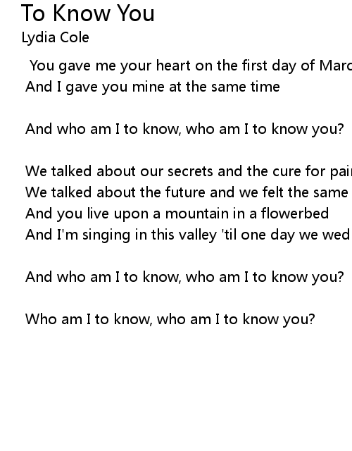 | Who am I to know, who am I to know you? |