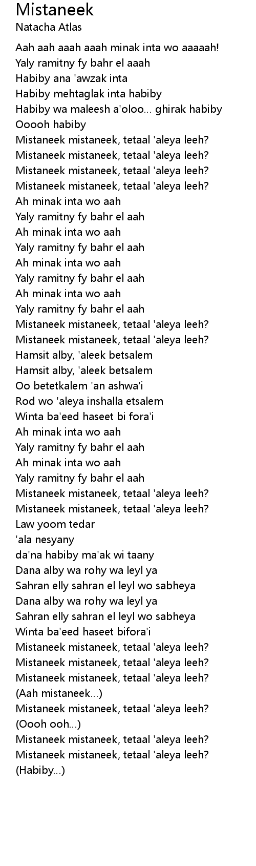 | Mistaneek mistaneek, tetaal 'aleya leeh? | |