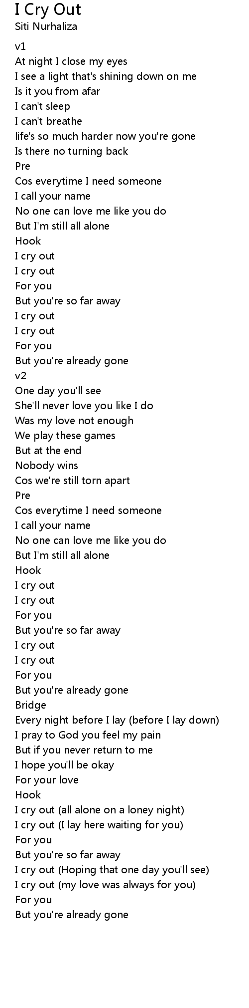 I cry out |