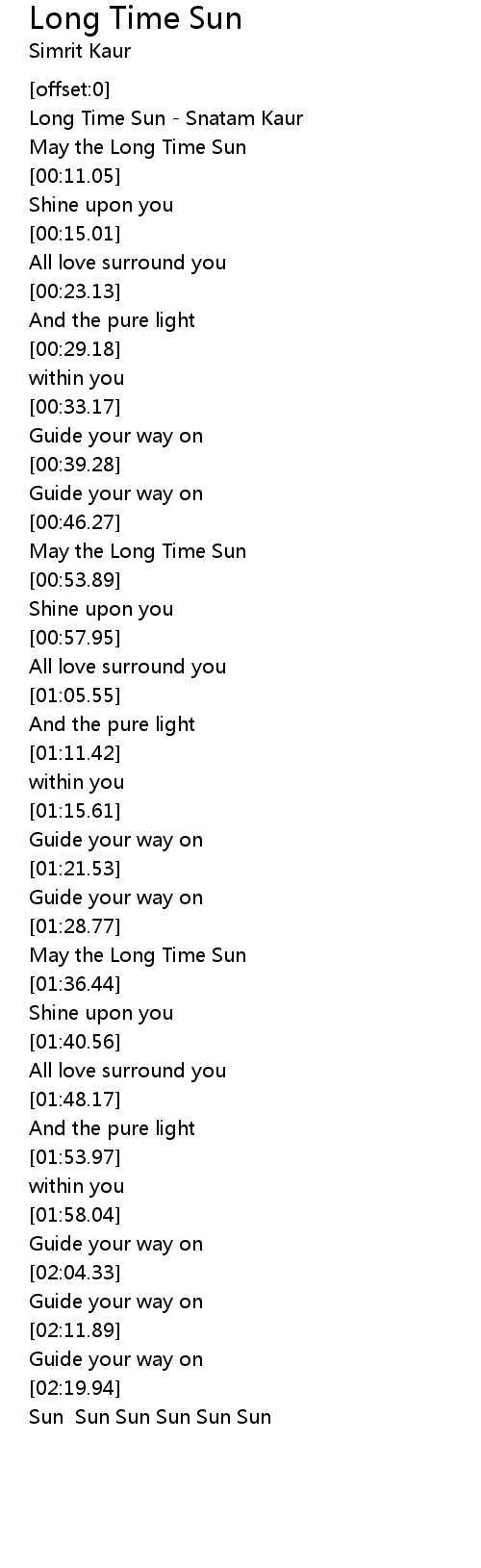| [00:02.19] | Long Time Sun - Snatam Kaur |