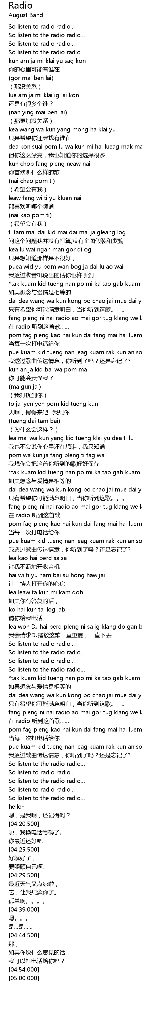 | [03:50.500] | So listen to radio radio… |