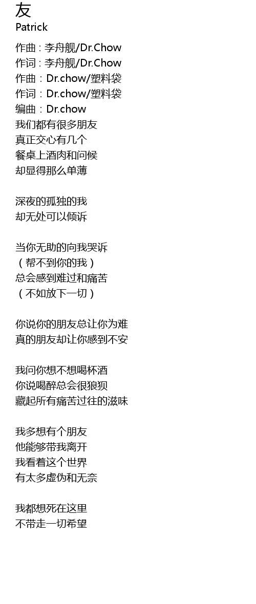 | wǒ duō xiǎng yǒu gè péng yǒu | |