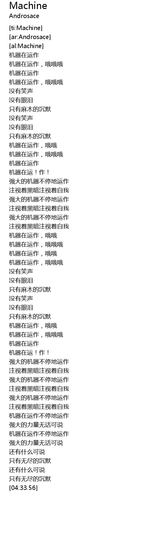 | [04:05.03] | 机器在运作不停地运作 |