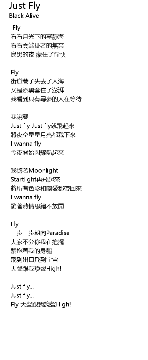 | Fly dà shēng gēn wǒ shuō shēng High! |