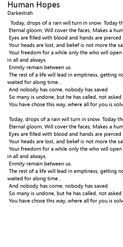 Eternal gloom, Will cover the faces, Makes a human hopes like an ashes of paper |