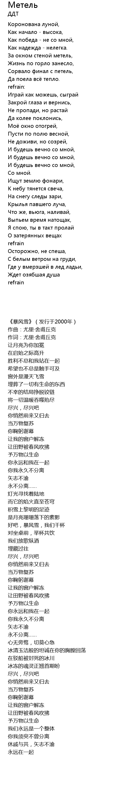 | 歌曲 | Метель |