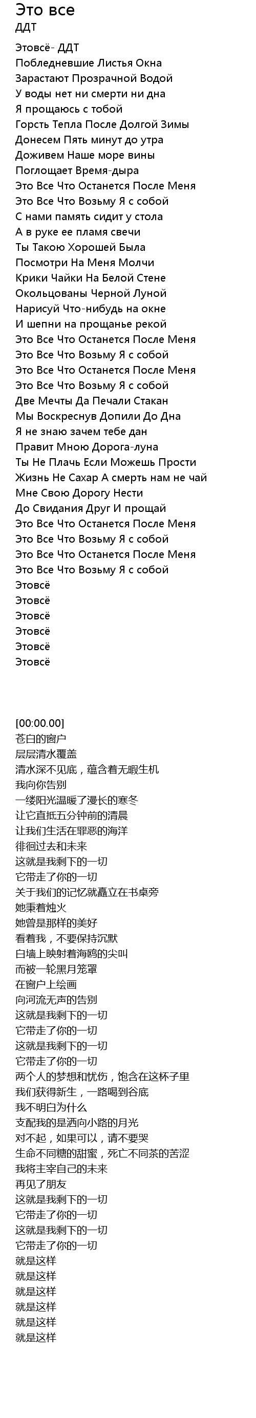 | [00:00.00] | Этовсё- ДДТ |