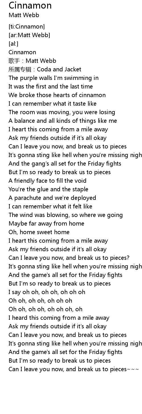 | [02:38.57] | Oh oh, oh oh, oh oh oh, oh |