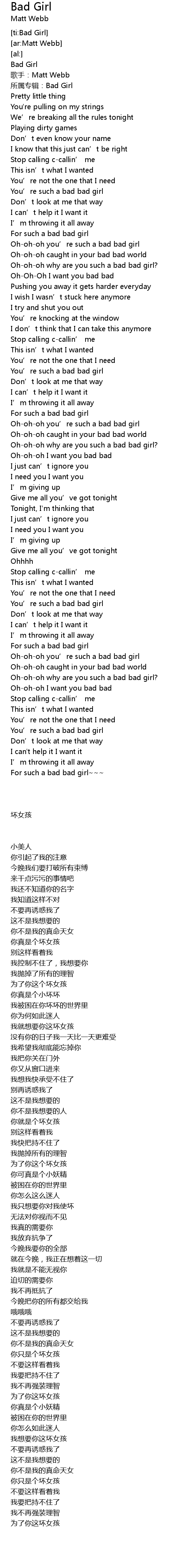 | [01:36.90] | Oh-oh-oh why are you such a bad bad girl? |