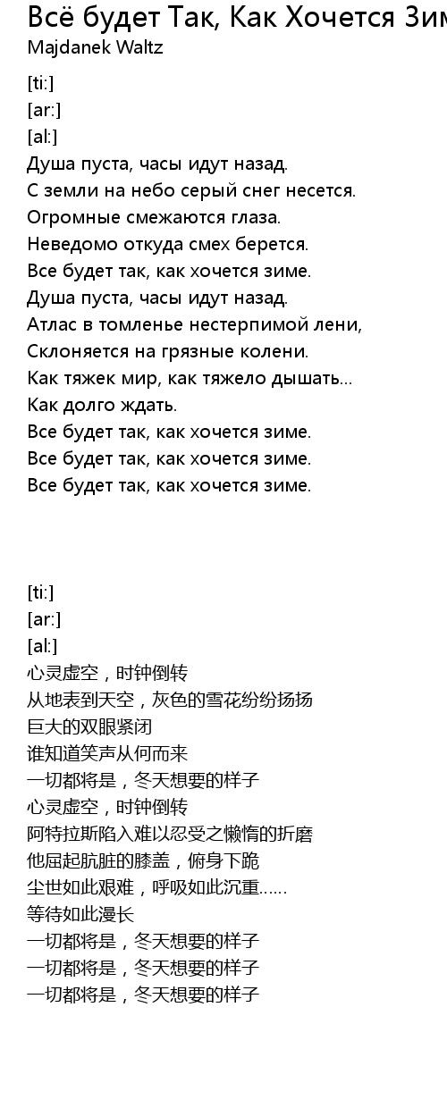 | 歌曲 | Всё будет Так, Как Хочется Зиме |