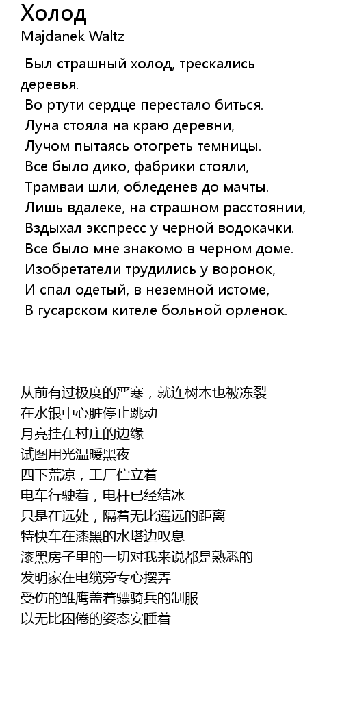 | [00:45.047] | Был страшный холод, трескались деревья. |