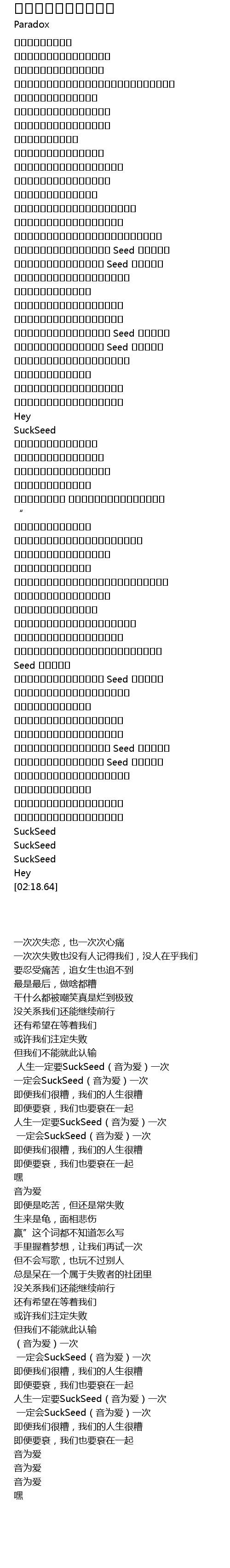 | [01:56.42] | 人生一定要SuckSeed(音为爱)一次 |