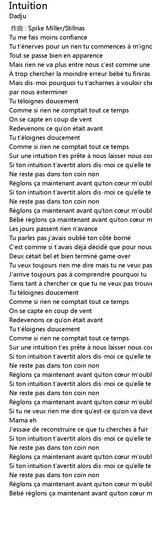 | [02:43.30] | Si ton intuition t'avertit alors dis-moi ce qu'elle te dit |