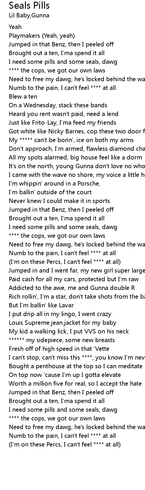 | [00:17.63] | I need some pills and some seals, dawg |