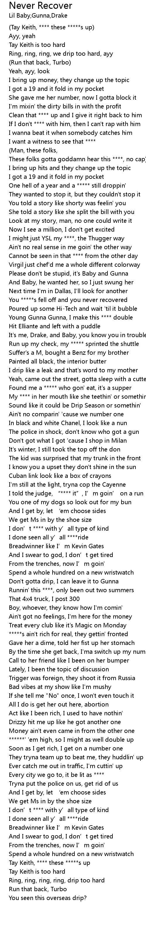 | [00:55.03] | Please don't be stupid, it's Baby and Gunna |
