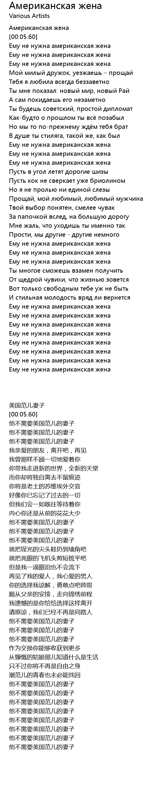 | [00:01.31] | Aмериканская жена |