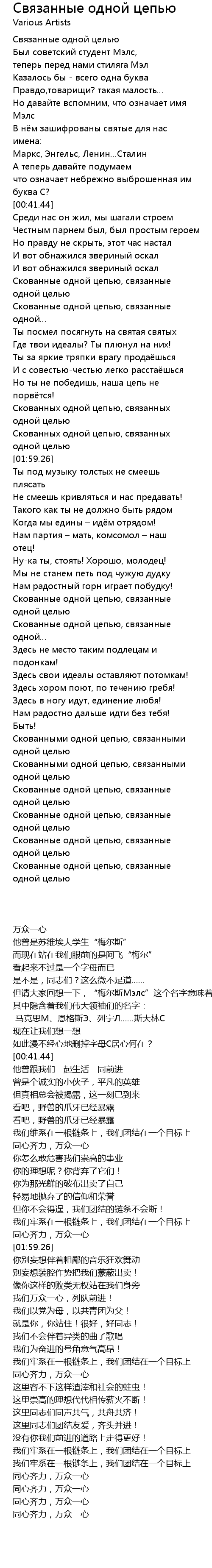 | [01:46.25] | Скованных одной цепью, связанных одной целью |