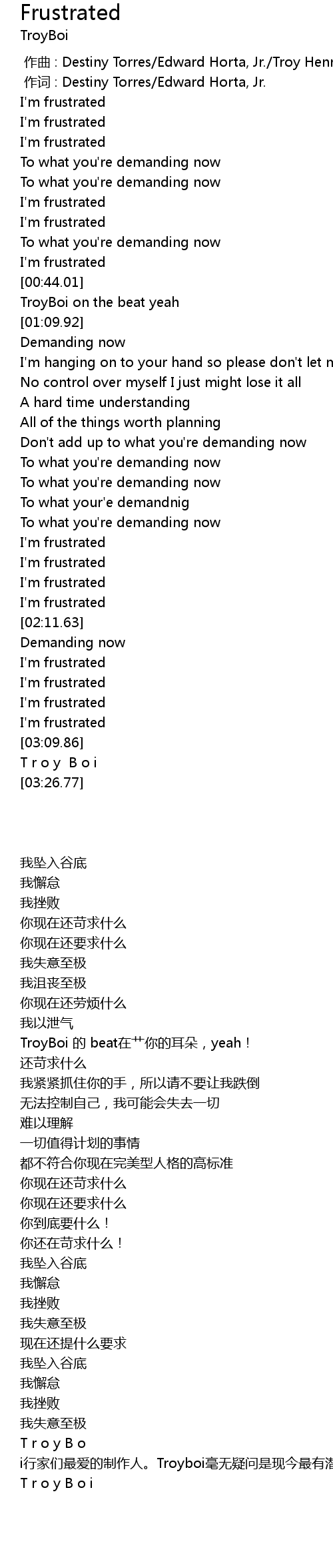 | [00:00.000] | zuo qu : Destiny Torres Edward Horta, Jr. Troy Henry |