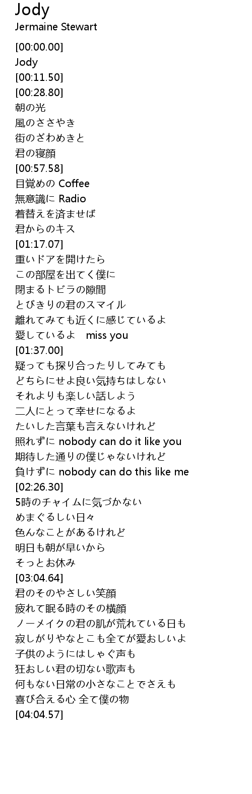 | [03:40.30] | 寂しがりやなとこも全てが愛おしいよ |