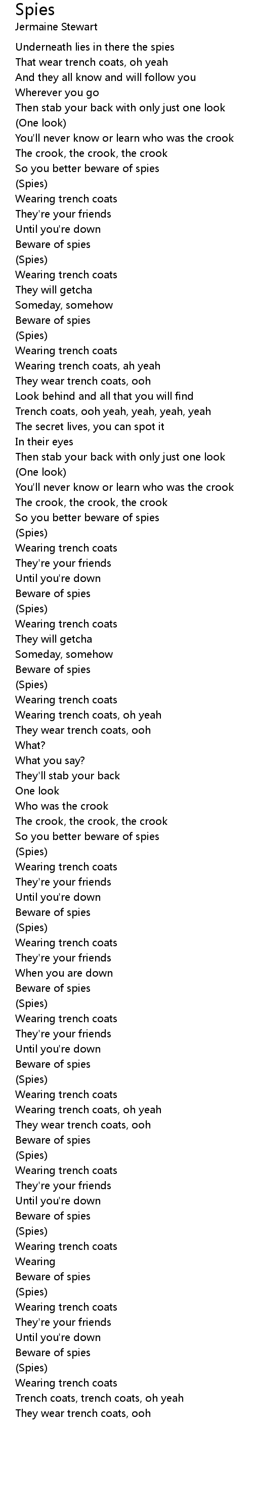 Trench coats, ooh yeah, yeah, yeah, yeah |