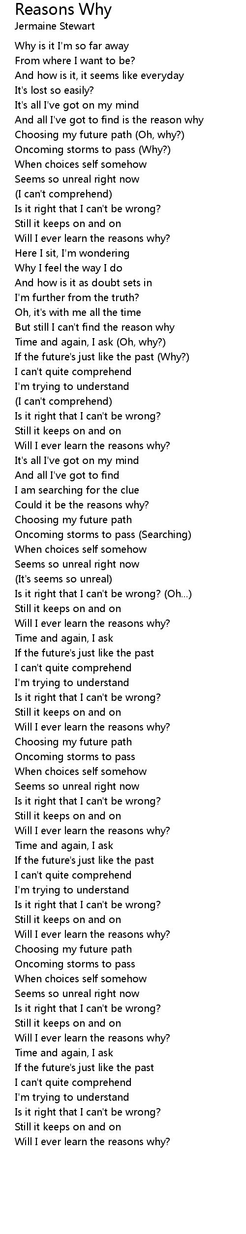 Will I ever learn the reasons why? |