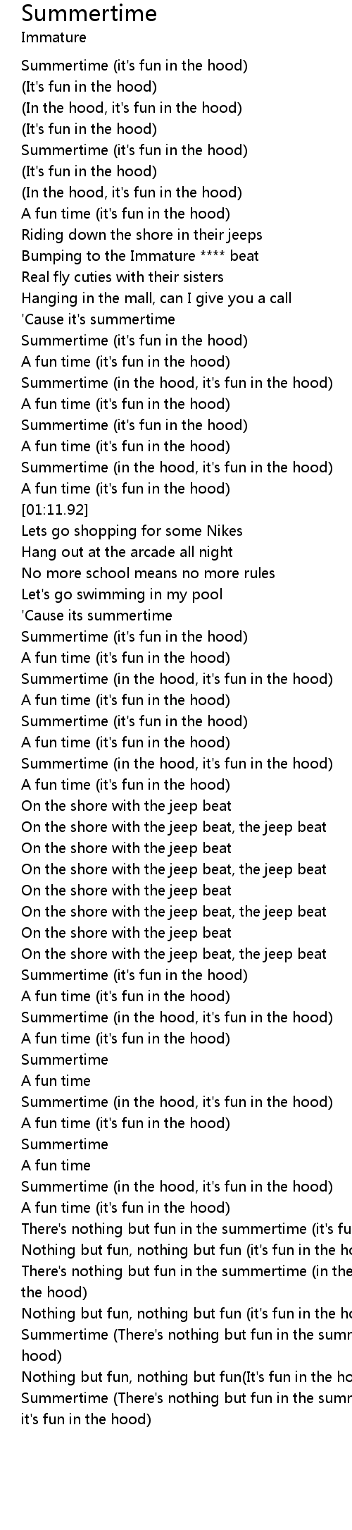 Summertime (There's nothing but fun in the summertime)(It's fun in the hood) |