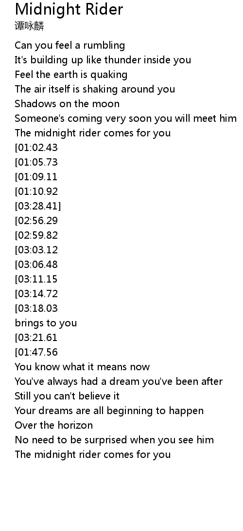 [03:57.94][03:21.61][01:40.74] Midnight rider, midnight rider