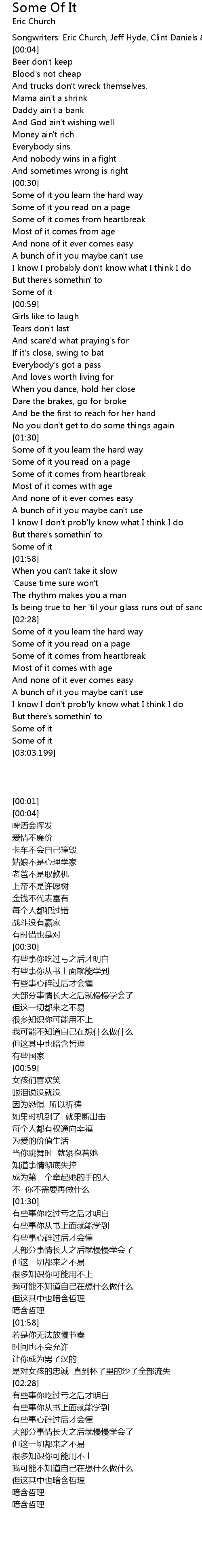 Songwriters: Eric Church, Jeff Hyde, Clint Daniels & Bobby Pinson |