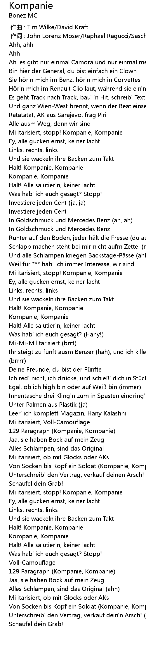 | [00:34.91] | Militarisiert, stopp! Kompanie, Kompanie |