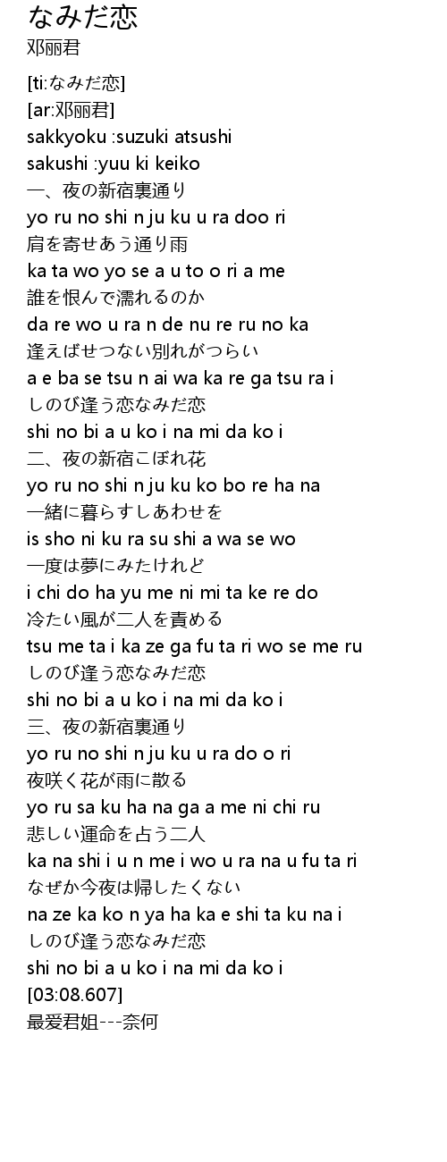| [02:57.961] | しのび逢う恋なみだ恋 |