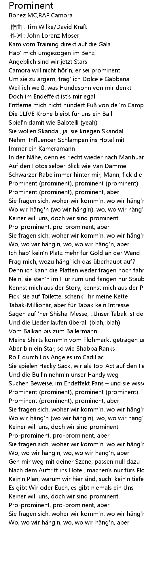 | [00:19.13] | Camora will nicht hör'n, er sei prominent |