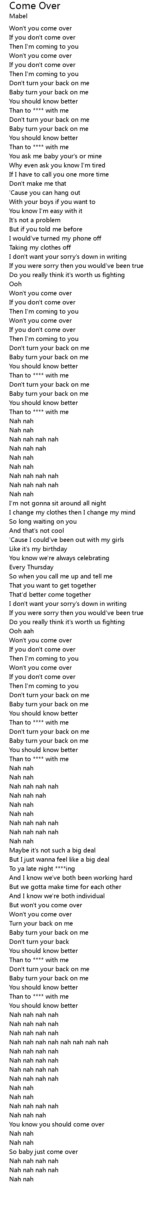 But won't you come over |