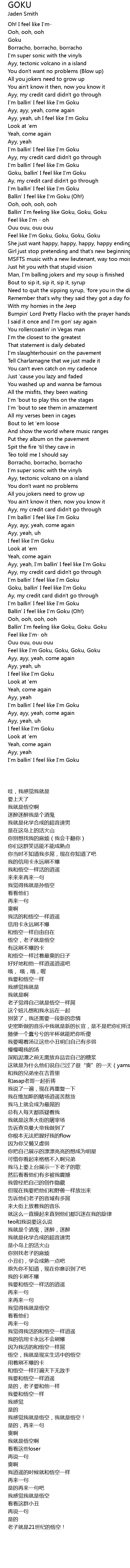 | [00:57.83] | Ballin' I'm feeling like Goku, Goku, Goku |