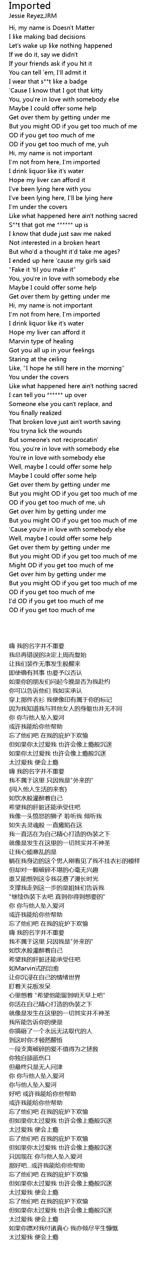 I'm not from here, I'm imported |