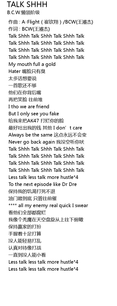| [01:10.43] | Talk Shhh Talk Shhh Talk Shhh Talk |