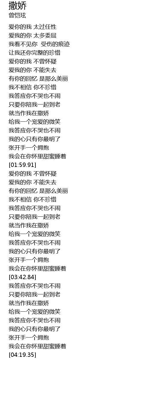 | [03:52.55] | jiù dàng zuò wǒ zài sā jiāo |