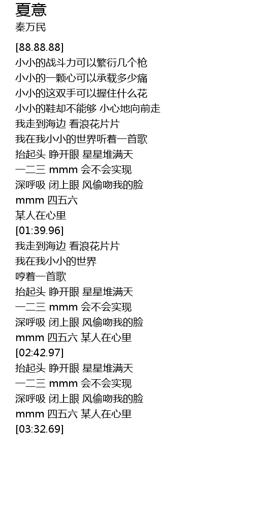 | [02:22.37] | 一二三 mmm 会不会实现 |