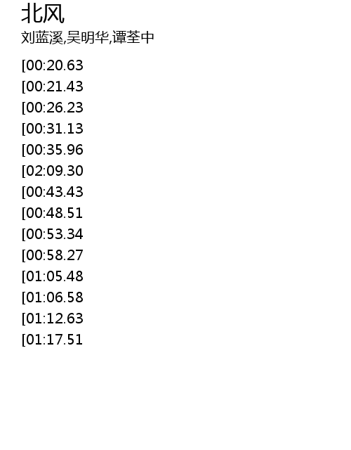 | [02:24.89][00:58.27] | 只见北风又见带来白云片片 |
