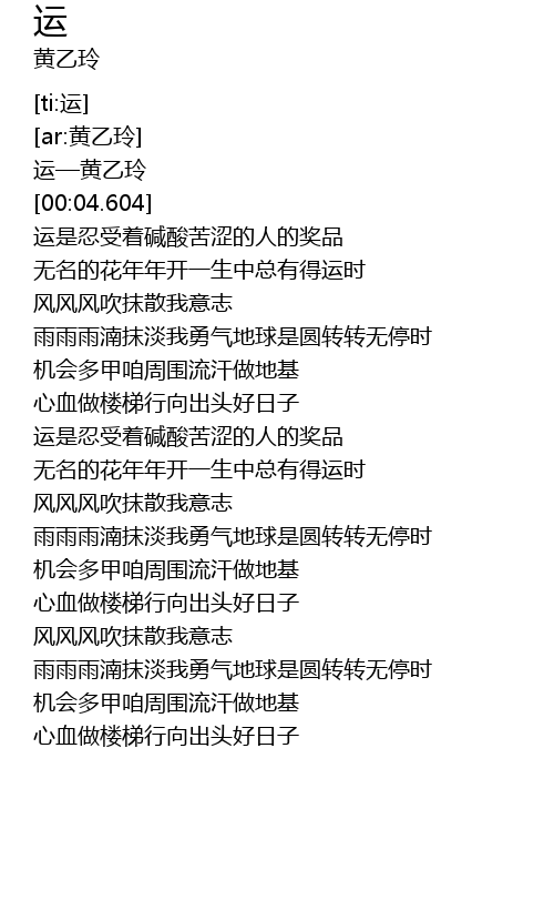 | [03:04.899] | 雨雨雨湳抹淡我勇气地球是圆转转无停时 |