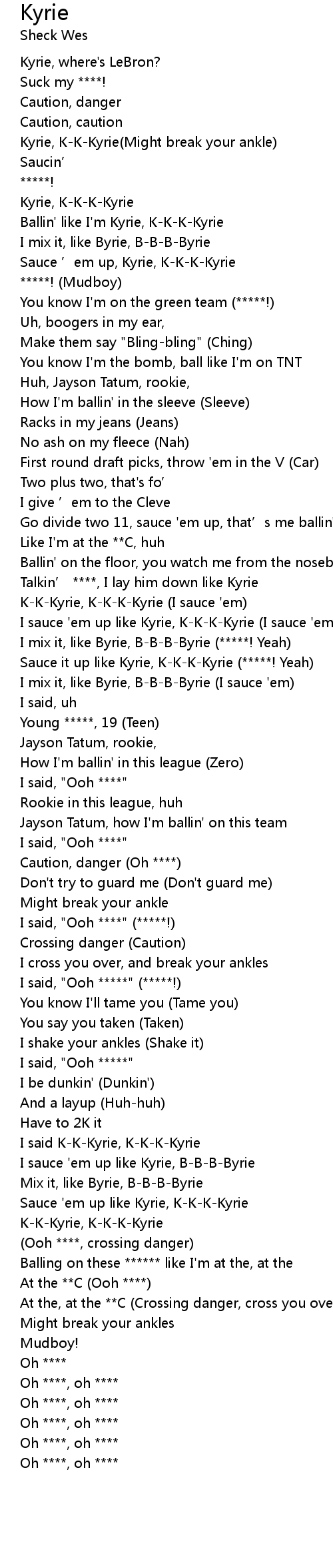 | [01:09.14] | Sauce it up like Kyrie, K-K-K-Kyrie (*****! Yeah) |