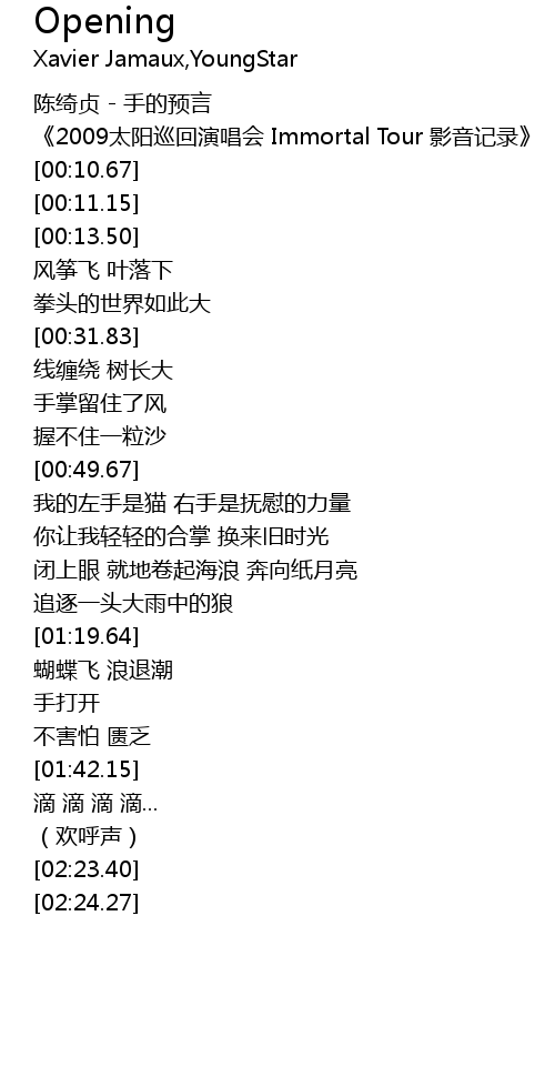 | [00:03.64] | 2009 tai yang xun hui yan chang hui Immortal Tour ying yin ji lu |