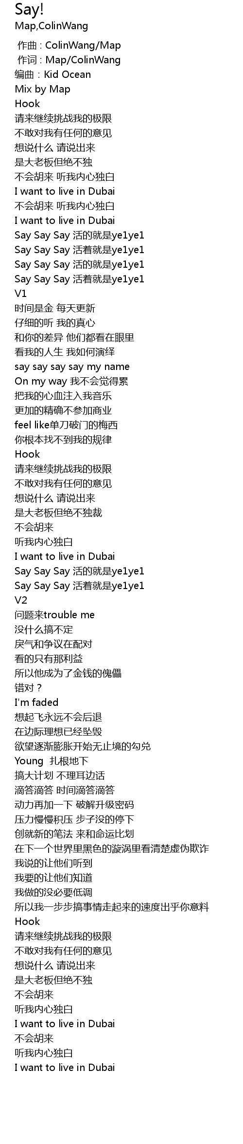 | [00:59.65] | Say Say Say huó zhe jiù shì ye1ye1 |