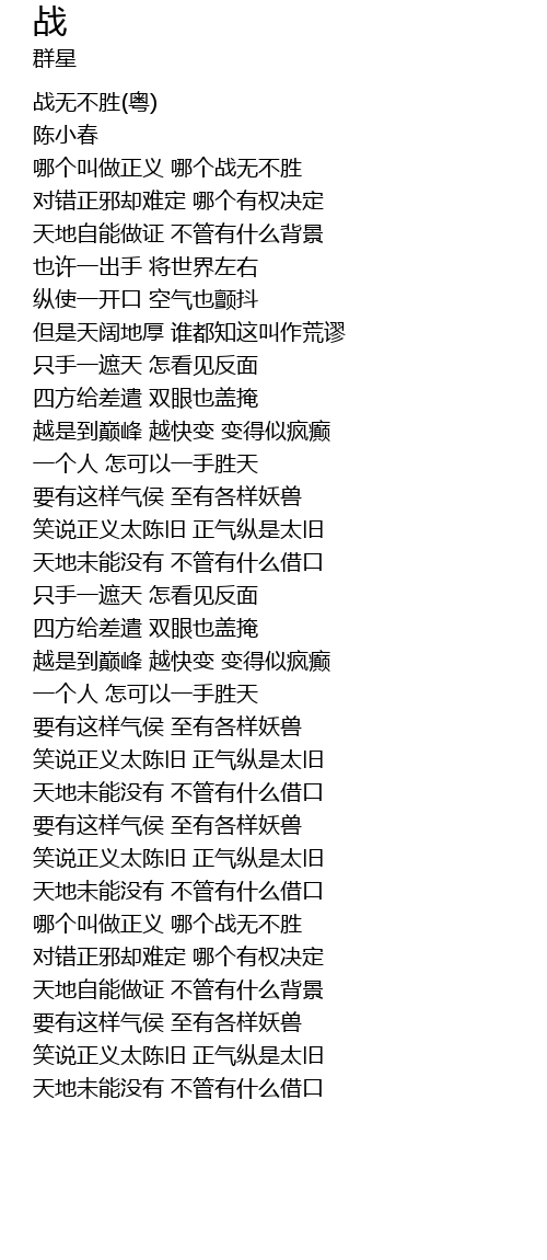 | [00:05.50] | 战无不胜(粤) |