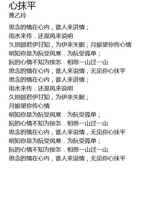 | sī niàn de qíng zài xīn nèi, shuí rén lái shuō qíng, wú jiàn nǐ xīn mǒ píng |