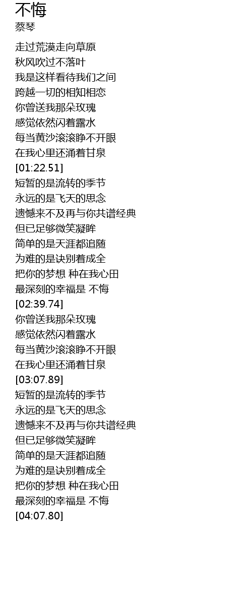 | [03:52.68] | 最深刻的幸福是 不悔 |