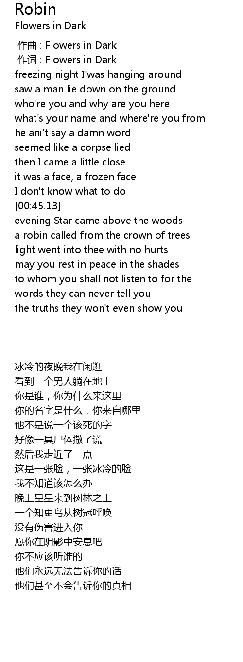 | [00:01.000] | zuò cí : Flowers in Dark |